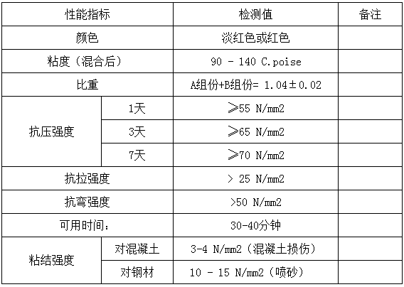 作为结构粘合剂来修复破裂和受损的混凝土。它作为结构性环氧树脂修补,并且能持久粘合混凝土和钢铁,已有很长的使用历史。它用于密封如圆柱、横梁、地基、甲板和挡水建筑等结构组件中的空腔和裂缝。它不仅形成了一道能有效防止水渗透的有力屏障,并且能强力粘合混凝土各部分,使其恢复原有的混凝土结构强度。