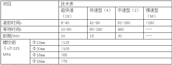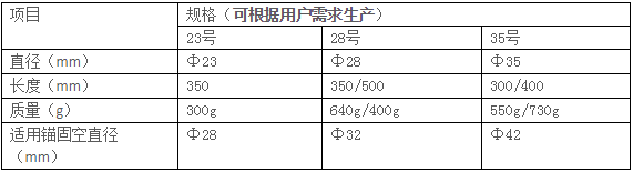 可与金属或玻璃钢锚杆配套使用,在地下工程、边坡支护、立井的装备安装、建筑物的构件连接、设备基础的锚固等均得到广泛的应用。